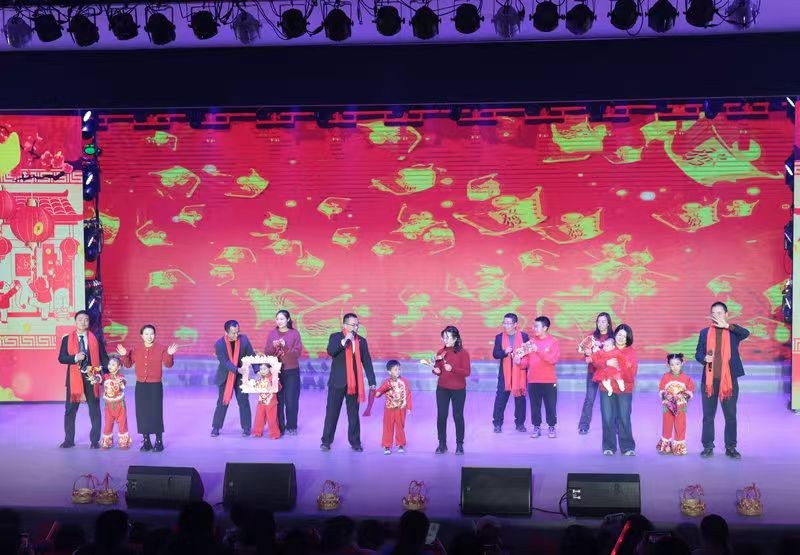“骏马迎春,功成杏坛”文艺会演率先在清北楼报告厅拉开帷幕。整场演出包含舞蹈、相声、音乐快板、小品、歌伴舞等十余个节目,均由师生自主编排、登台表演。晚会特别设置多项优秀教师表彰环节,以此弘扬育人初心。其中,本校双职工家庭自编自演的节目《恭喜发财》,以朴实真挚的表演引发全场共鸣,生动展现了教职工群体的奉献精神与校园温情。